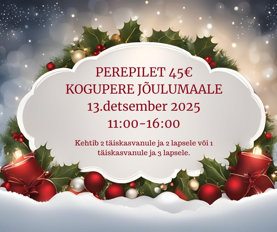 Perepilet eelmüügist 45€ . Pilet kehtib 2 täiskasvanule ja 2 lapsele või 1 täiskasvanule ja 3 lapsele